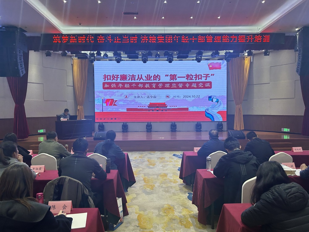党课既有理论的高度、工作的贴合度,又有实践的深度,用大量生动的案例深刻分析了腐败的危害,严明了纪律规矩,勉励年轻干部充分检视自我、提升自我,达到“未病先防”“小病防变”的效果,进一步强化了年轻干部廉洁从业的意识。参加培训的年轻干部纷纷表示,在今后工作中,要时刻以反面典型案例为镜,筑牢思想道德防线,坚持严于律已,自觉抵制各种不良风气侵袭和诱惑,用自己的实际行动为济粮集团高质量发展贡献力量。(供稿:济粮集团纪委)